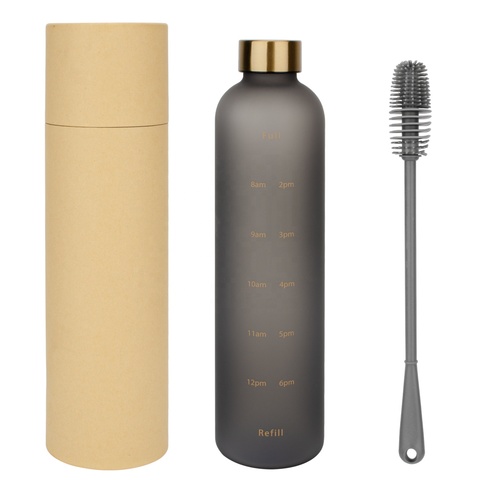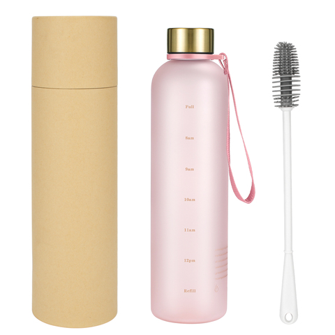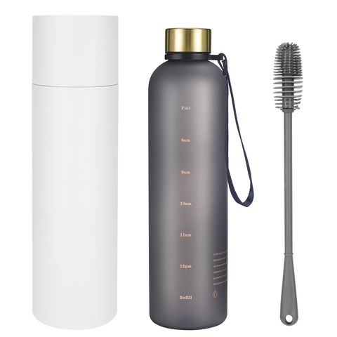 1 lít Frosted timestamps tối giản người lớn Mark motivational chai nước bằng nhựa với Silicone làm sạch bàn chải