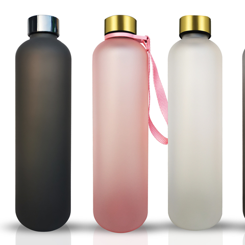 Chai Nước Thủy Tinh Borosilicate Lớn 32Oz Có Thể Tái Sử Dụng Tùy Chỉnh Chai Nước Mờ Có Đánh Dấu Thời Gian