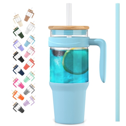 Yeni varış sızdırmaz uzun borosilikat cam Tumbler büyük kapasiteli kaymaz silikon kol 40 oz Tumbler kupası